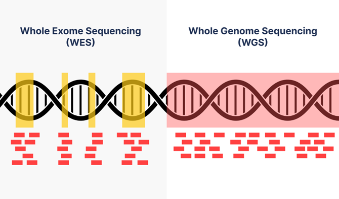 ดังนั้นจึงสามารถทำความเข้าใจเบื้องต้นได้ว่า การดูจีโนมทั้งหมด (WGS) จะทำให้สามารถเข้าถึงรหัสพันธุกรรมทั้งหมด และสามารถระบุการเปลี่ยนแปลงใน DNA ในขณะที่ การดู Exome ทั้งหมด (WES) จะตรวจสอบเฉพาะส่วนที่สามารถถอดรหัสเพื่อแปลรหัสเป็นโปรตีนได้เท่านั้น